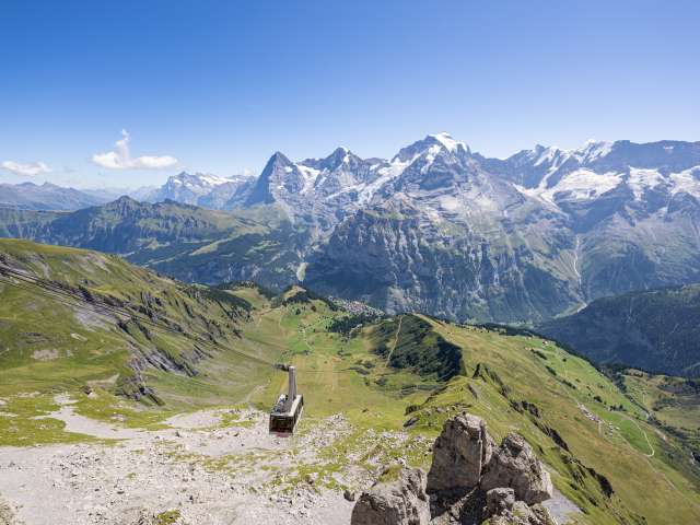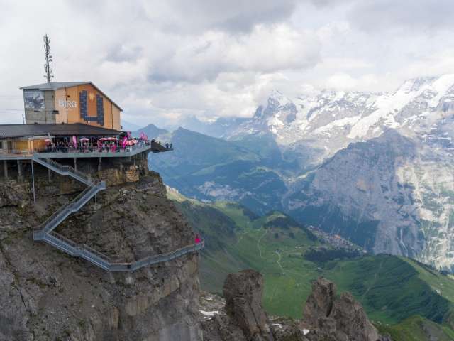 Le bistro avec une grande terrasse ensoleillée ainsi que deux attractions avec une vue imprenable sur l'Eiger, le Mönch et la Jungfrau t'attendent ici.
