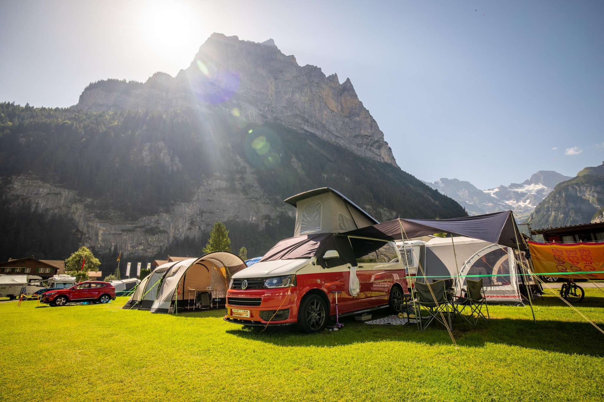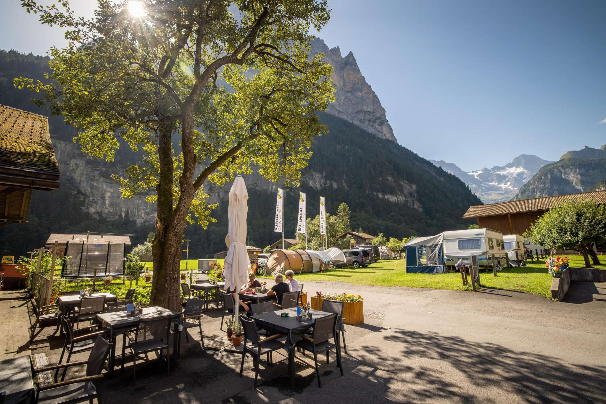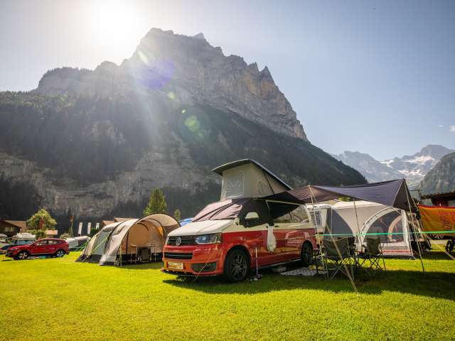 Notre camping est idéalement situé juste à côté de la ligne de bus et constitue le point de départ idéal pour des aventures inoubliables. En quelques minutes, vous rejoignez le téléphérique du Schilthorn, qui vous emmène vers les villages de montagne idylliques de Gimmelwald et Mürren. De là, vous pourrez profiter de randonnées spectaculaires et monter jusqu’au légendaire Piz Gloria, le restaurant tournant offrant une vue panoramique à 360° à couper le souffle sur les Alpes.