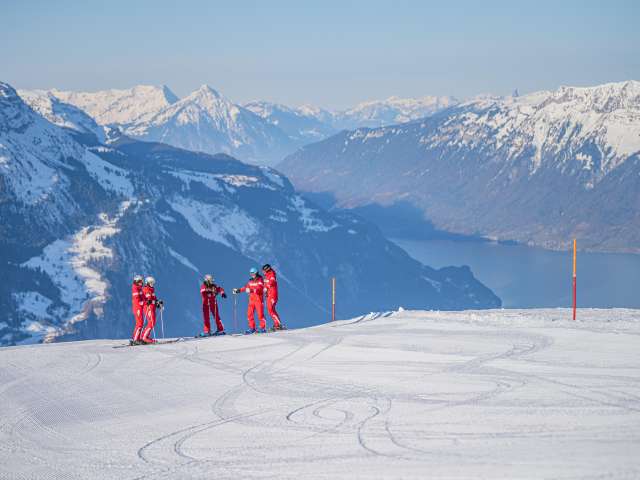 Avec les plus avancés, les talentueux professeurs de sports de neige* descendent des pistes de ski Hasliberg exigeantes. Si tu cherches quelque chose de spécial, les guides d'hiver qui connaissent les lieux t'accompagneront dans l'une des vallées sauvages et romantiques du Haslital.