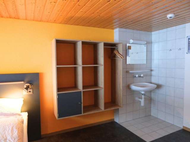 Nous proposons des chambres doubles et familales avec salle de bain privée dans notre Eiger Lodge Chic. Si tu es du genre simple et que les salles de bain communes ne te posent pas de problème, l'Eiger Lodge Easy est parfait pour toi. Tu y trouveras des chambres privées de deux à six lits ou des lits dans des dortoirs mixtes.