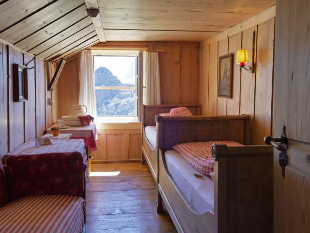 Des chambres privées confortables et joliment décorées ainsi qu'un camp de matelas rustique pour les grands groupes peuvent être réservés à l'hôtel de montagne. Mais les hôtes journaliers sont également les bienvenus. Une terrasse ensoleillée avec une vue magnifique sur la montagne t'attend au sommet.