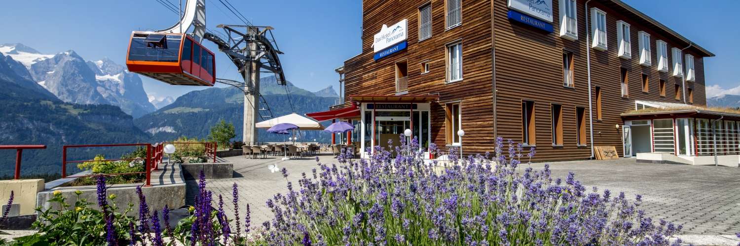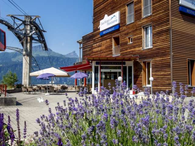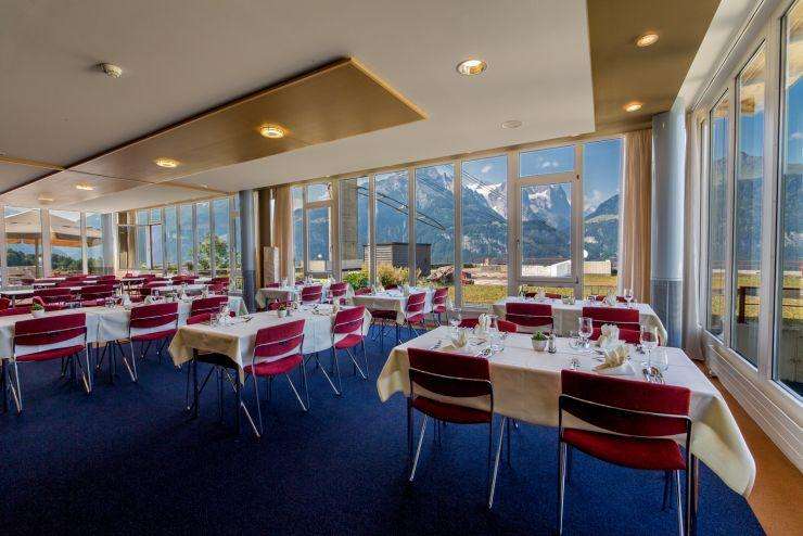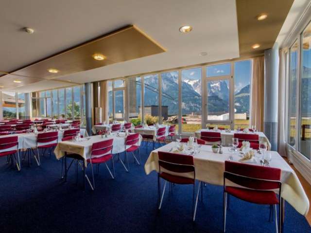 Tu profiteras doublement du restaurant et de la grande terrasse ensoleillée. Que ce soit pour le goûter, le déjeuner, le goûter ou le dîner, tu es toujours le bienvenu ici. Grâce au vaste choix de cuisine traditionnelle suisse et internationale, tu n'auras que l'embarras du choix.