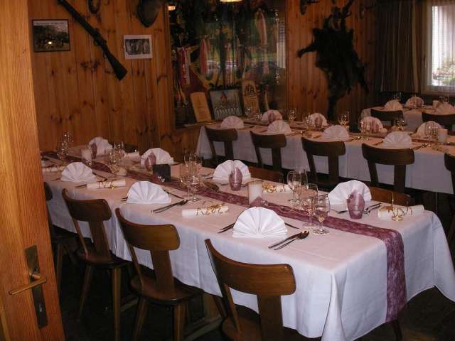 Le restaurant confortable dispose d'une salle de restaurant et de deux salles à manger. La salle de restaurant peut accueillir environ 20 personnes, les salles à manger 20 et 35 personnes. Les salles conviennent très bien pour les événements associatifs et familiaux ainsi que pour les réunions et les conférences.