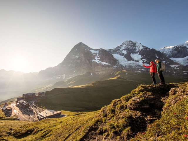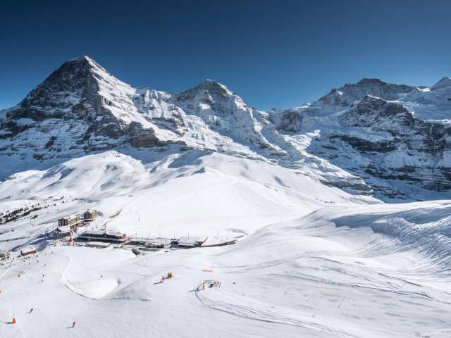 Kleine Scheidegg se trouve au milieu de la beauté alpine au-dessus de Grindelwald et Wengen, au pied de l'Eiger, du Mönch et de la Jungfrau. En tant que centre de la région de ski et de randonnée, cet endroit est aussi le point de départ direct vers le Jungfraujoch.