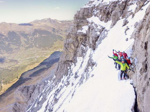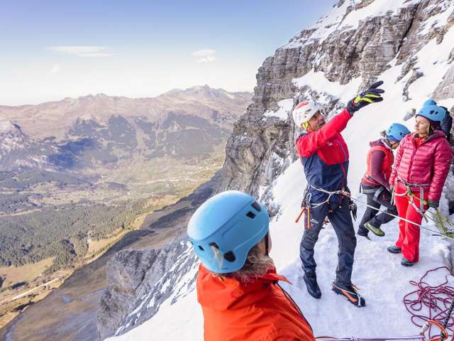 A cette occasion, vos accompagnateurs OUTDOOR se feront un plaisir de vous raconter tout ce qu'il faut savoir sur le drame et le spectacle de la première ascension de la face nord de l'Eiger et de vous montrer le matériel d'escalade utilisé à l'époque, contrairement à ce qui se fait aujourd'hui. Vous serez étonnés. Dans la face nord de l'Eiger, haute de 2'000 m, une vue de 600 m de profondeur sur la vallée vous attend. Après cette expérience unique dans la face nord de l'Eiger, vous pouvez soit continuer en train jusqu'au Jungfraujoch, soit rentrer à Grindelwald en train et/ou en télécabine.