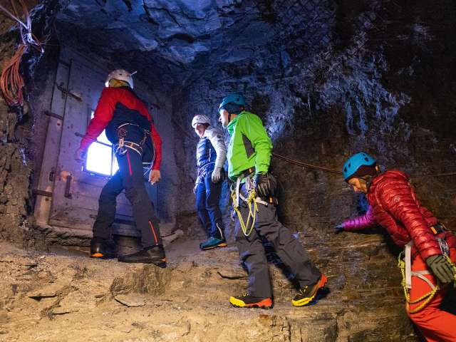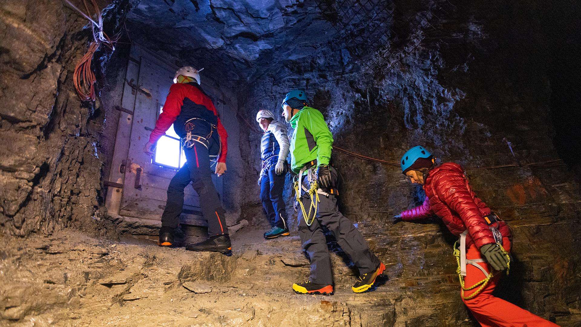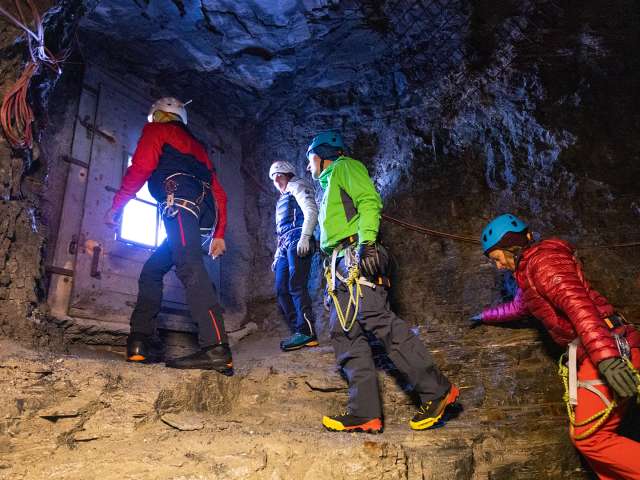 Le mythe de la "face nord de l'Eiger" peut être vécu de près par vous. En compagnie de nos guides de montagne brevetés, équipés de manière adéquate avec casque et baudrier et instruits de manière compétente, vous oserez faire vos premiers essais d'escalade dans la face nord de l'Eiger. Le train pour le Jungfraujoch s'arrête exclusivement pour vous au "Stollenloch".