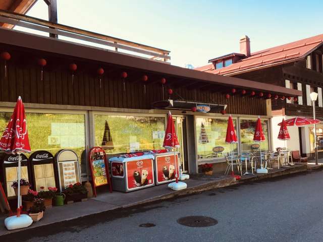 Le restaurant se trouve dans la rue inférieure du village, à peu près au milieu de Mürren.