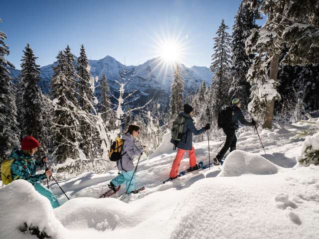 Les guides de montagne AIPM d'OUTDOOR conduisent votre groupe en toute sécurité à travers un terrain enneigé et non préparé. Équipés de raquettes à neige et de bâtons de ski, vous découvrirez une partie de la nature loin des sentiers touristiques de la région de la Jungfrau. En chemin, nos guides OUTDOOR vous feront volontiers partager leurs connaissances sur leur vie et leur travail en montagne. La distance et la vitesse de marche seront adaptées au groupe.
