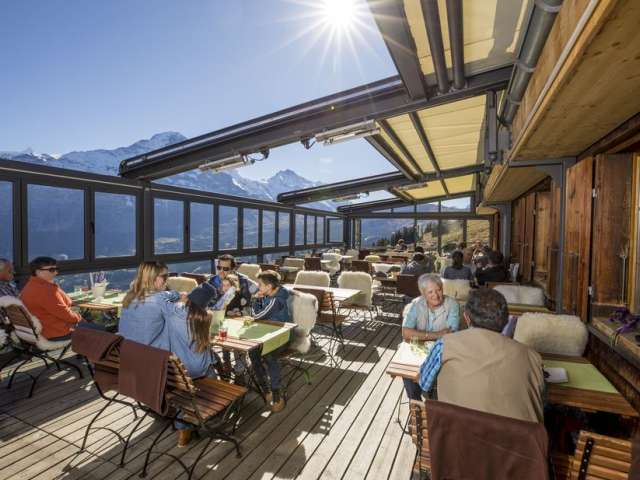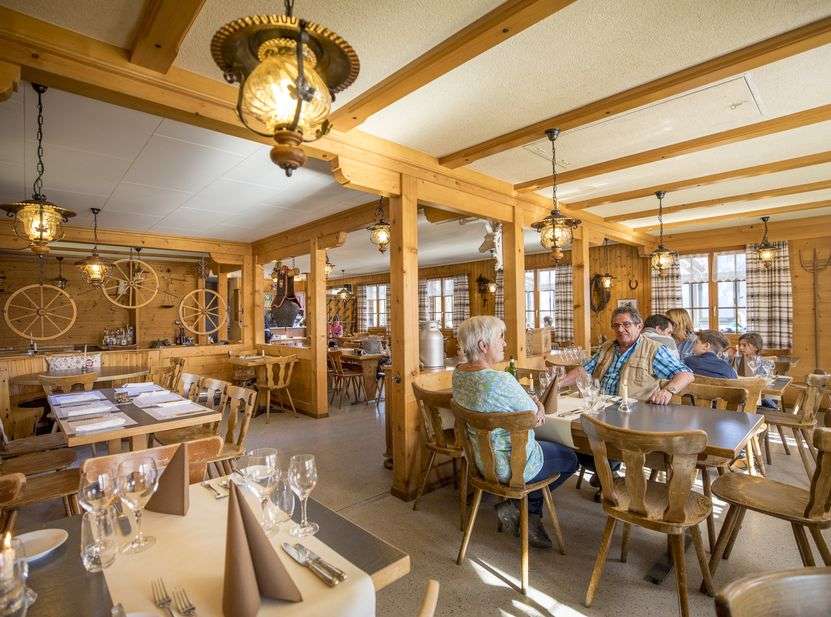 Le restaurant alpin Bussalp avec son restaurant avec service et sa grande terrasse ensoleillée, son AlpLounge avec canapés et pelouse, ses chaises longues et son bain Kneipp t'invitent à laisser ton esprit vagabonder après une randonnée. Pendant ce temps, notre équipe de service et de cuisine te gâte avec des plats traditionnels de cabane jusqu'à des excursions culinaires.