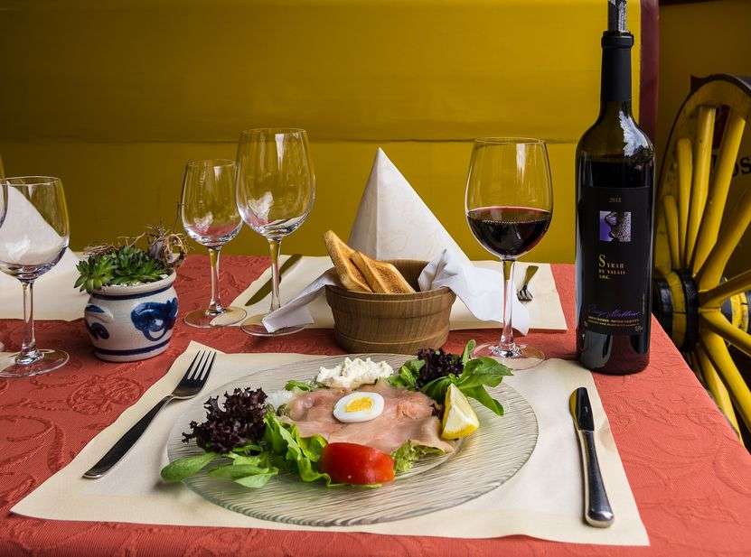 Que ce soit en couple, avec des amis ou même en compagnie d'hôtes locaux à la table des habitués, des moments culinaires forts t'attendent. Le tout est complété par de bons vins de la cave à vin de la maison.