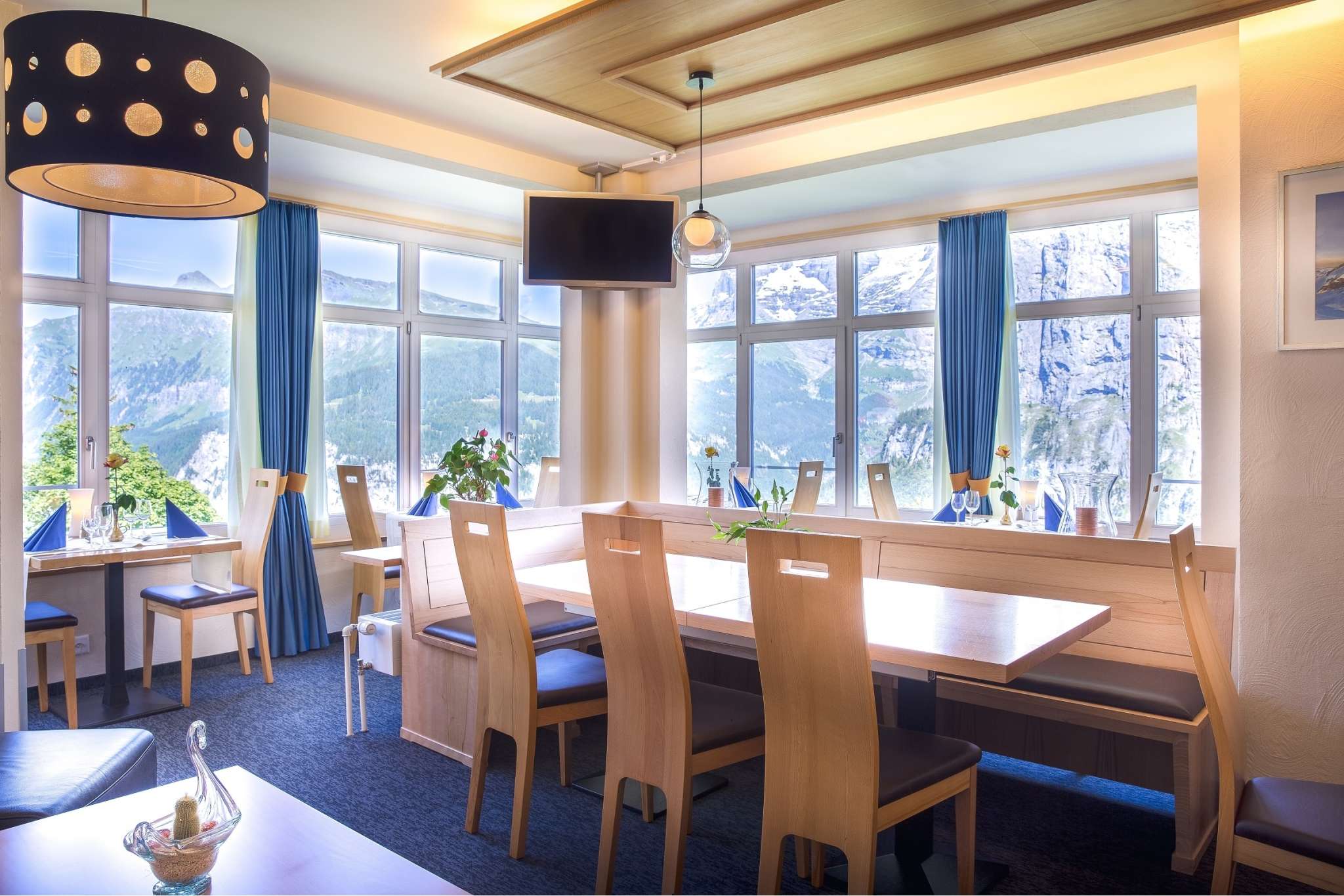 Le restaurant de l'hôtel Alpina dispose d'une salle à manger spacieuse dans laquelle sont servis de nombreux plats nationaux et internationaux. Les délices peuvent être dégustés avec une vue directe sur l'Eiger, le Mönch et la Jungfrau grâce aux grandes fenêtres panoramiques.