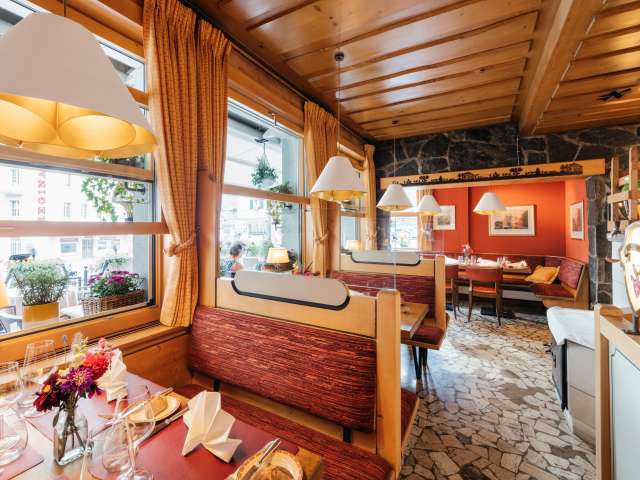 Le restaurant traditionnel, avec ses «Stübli» et sa terrasse boulevard située sur la place du village, au cœur de Grindelwald, invite à la détente et au plaisir.