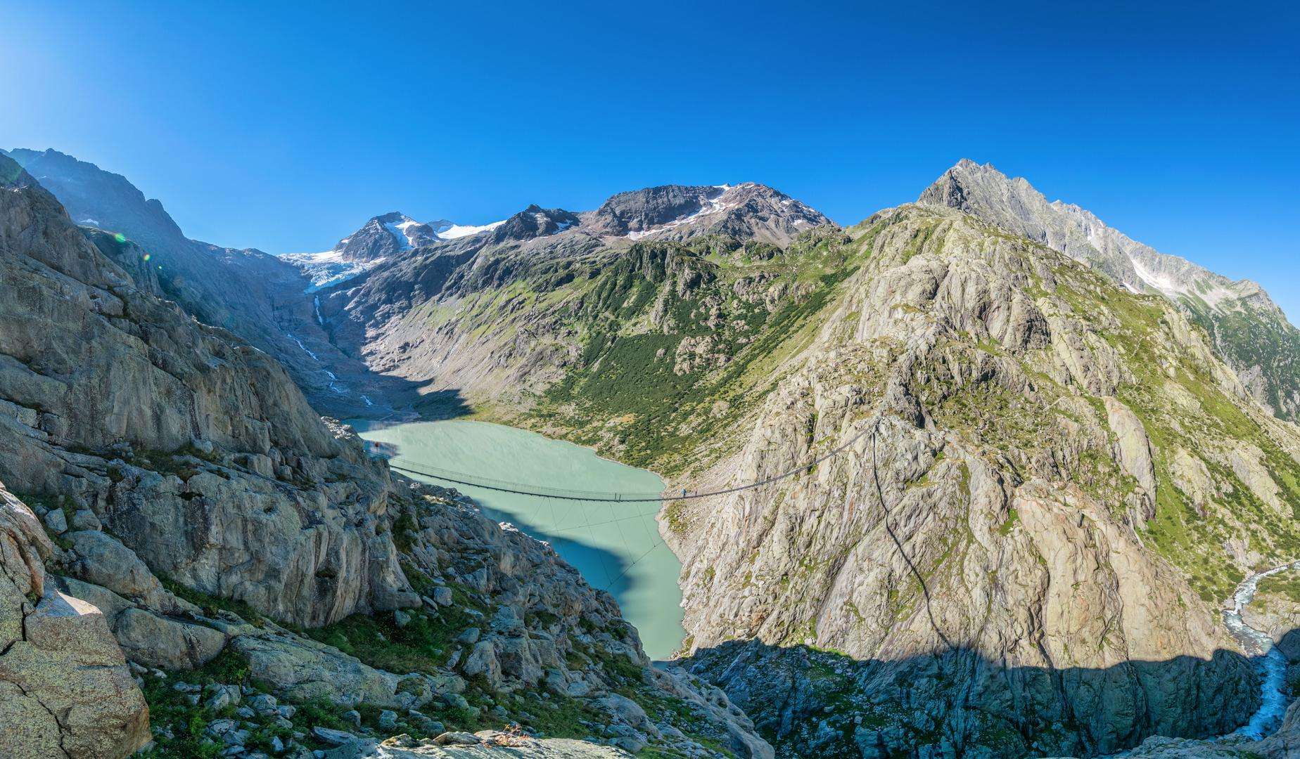 Le trajet au-dessus des eaux du Trift dure une dizaine de minutes. Le téléphérique vous emmène au point de départ de pour la randonnée reputée d’une heure et demi – le pont du Trift.